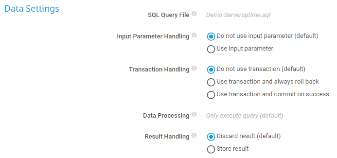 - Do not use imput parameter (default): Execute the SQL query file without using variables.