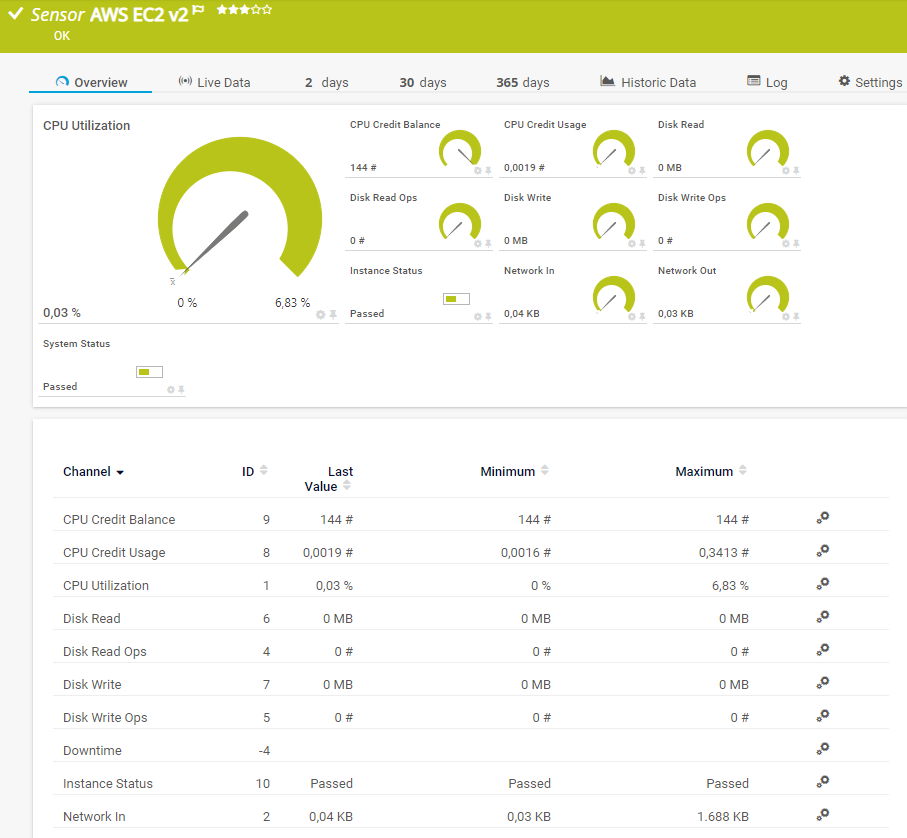 The AWS EC2 v2 sensor monitors the performance of an Amazon Web Services (AWS) Elastic Compute Cloud (EC2) instance by reading its data from Amazon CloudWatch via the AWS API.